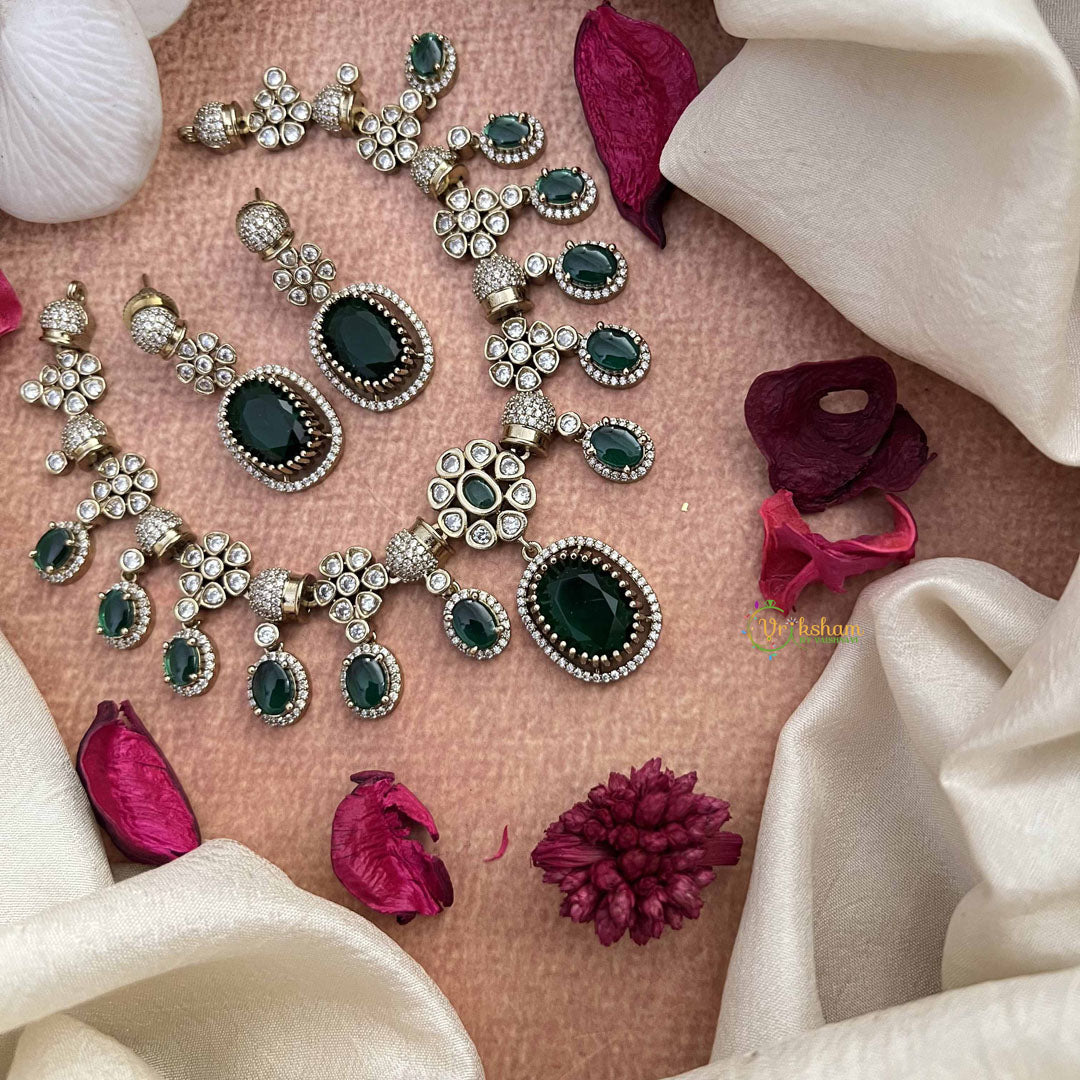 Transport yourself to an era of timeless elegance with this Victorian Oval Emerald Look Style Short Neckpiece in white and green. This refined piece draws inspiration from classic Victorian aesthetics, featuring beautifully proportioned oval elements with an emerald-inspired finish that evokes luxury and prestige. The sophisticated white and green palette creates a balanced composition that appeals to those with discerning taste. The carefully designed short length ensures versatile styling for both formal occasions and elevated everyday moments. A truly distinctive accessory that marries historical charm with contemporary sophistication, offering enduring beauty and refined grace.