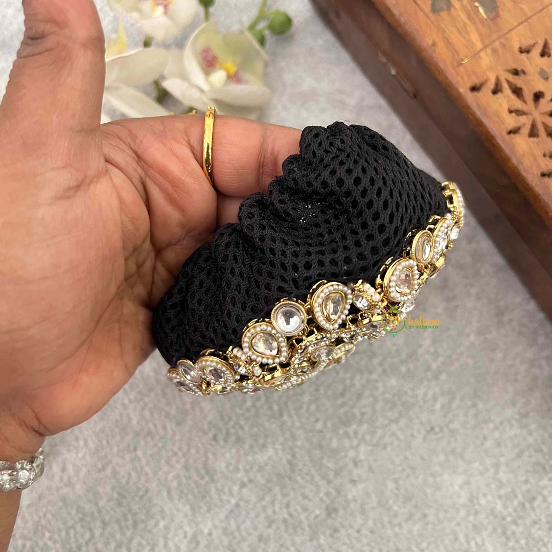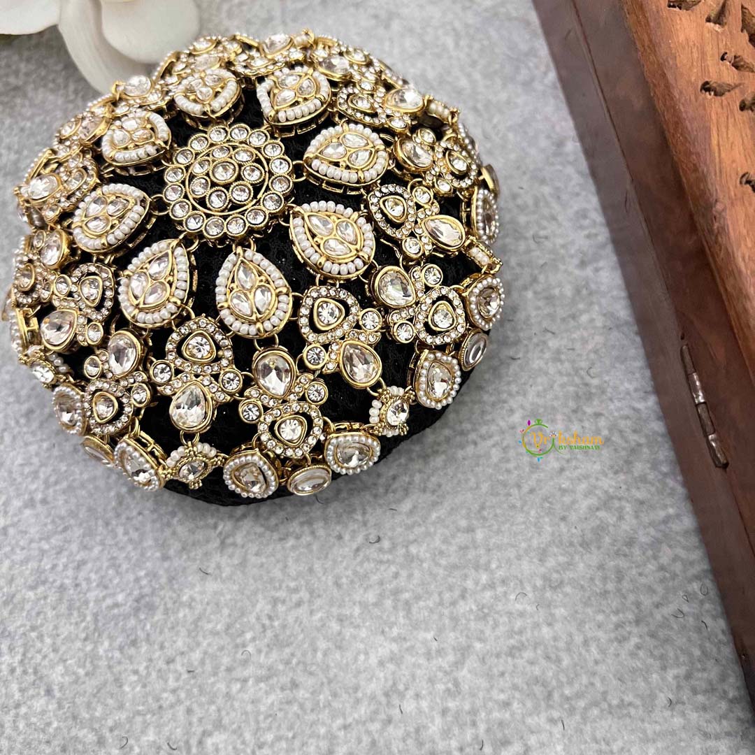Embrace nostalgic glamour with this vintage-inspired pearl and stone statement bun maker, a timeless accessory that channels old-world sophistication. Lustrous pearls interspersed with carefully selected stones create an understated yet commanding presence, perfect for those who appreciate classic beauty. The integrated hair bun cage ensures secure positioning while the refined gemstone arrangement adds subtle opulence to your updo. Ideal for formal events, bridal occasions, and celebrations where vintage aesthetics are cherished, this piece complements both period-inspired and modern ensembles. A distinguished accessory for discerning individuals who value enduring elegance and wish to make a graceful, memorable impression.