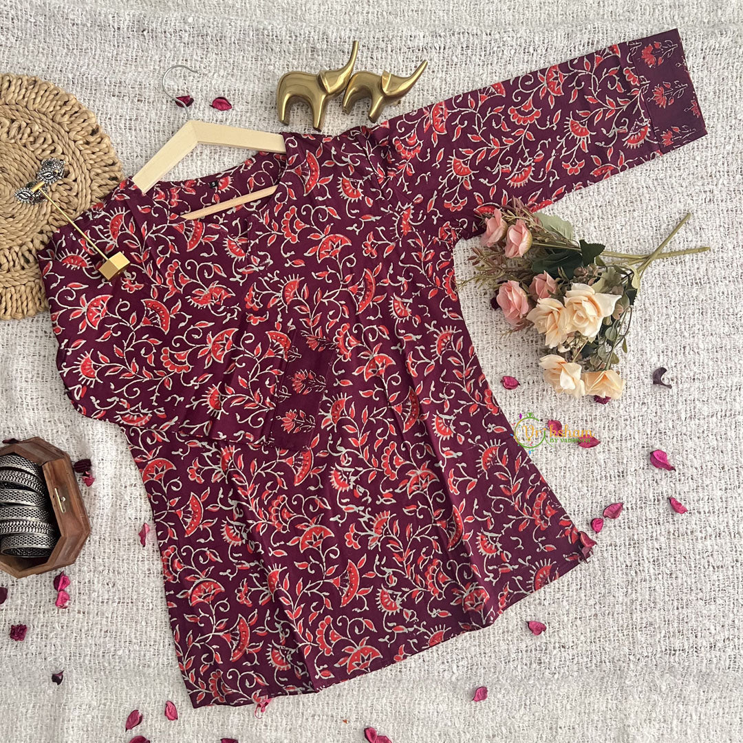 Introducing Vriksham Wine Handblock Cotton Short Kurti, the perfect blend of style and comfort. Made with 100% cotton and handblock printing, this elegant 3/4 sleeve kurti is suitable for both daily wear and office wear. Elevate your wardrobe with this luxurious piece and make a statement wherever you go.
