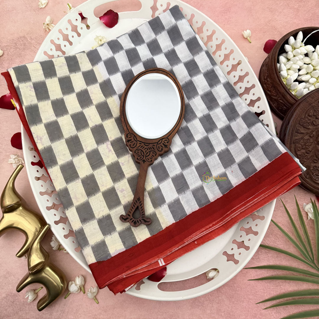 The Vriksham White & Grey Checks Printed Cotton Mulmul Saree combines classic design with modern simplicity. Made from lightweight, breathable cotton mulmul, its subtle checkered pattern in white and grey offers a refined and versatile look. Ideal for both everyday wear and special occasions, this saree ensures comfort while maintaining an understated elegance that complements any style.