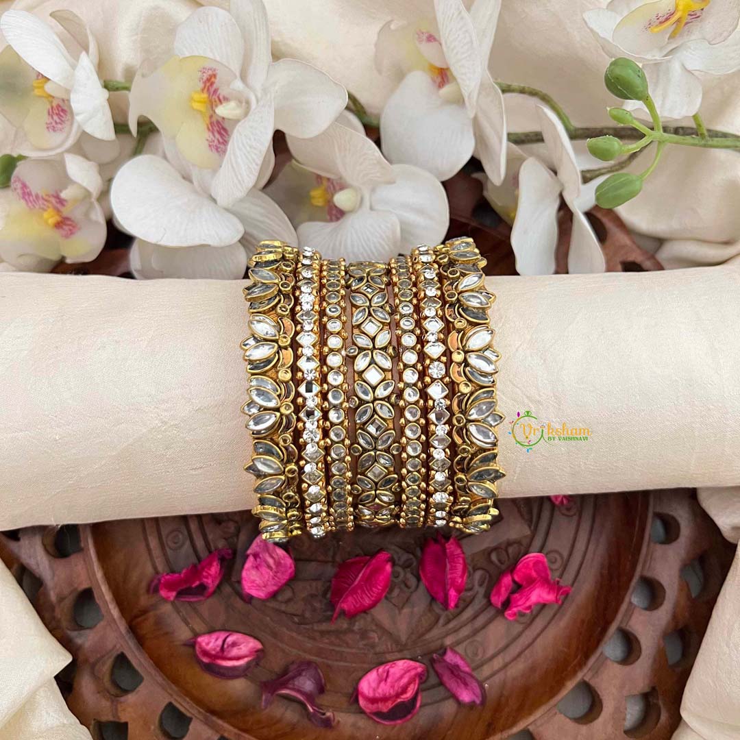 Vriksham White Kundan Bollywood Style Bridal Chura Silk Bangles Set-G21738