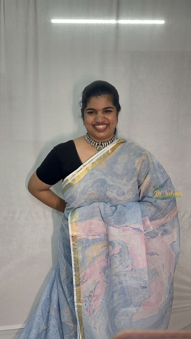 Experience refined elegance with this stunning Kota cotton saree, showcasing pristine white adorned with sophisticated marble print patterns created through traditional hand block printing. The clean white canvas provides a timeless foundation, while the intricate marble motifs add artistic depth and contemporary visual interest to the composition. Crafted from premium Kota cotton, this saree delivers exceptional breathability and a naturally graceful drape that flatters every silhouette. The lightweight fabric ensures all-day comfort, making it suitable for both casual refinement and formal occasions. The hand block printing technique imparts authentic character and individuality to each piece, celebrating time-honored artistry and sustainable craftsmanship. The versatile white tone pairs beautifully with various blouse colors and accessories, offering endless styling possibilities and wardrobe flexibility. Perfect for those who appreciate minimalist sophistication combined with heritage techniques, this saree seamlessly transitions across occasions with understated elegance. An investment piece that honors traditional methods while delivering superior comfort, timeless style, and the enduring appeal of thoughtfully crafted ethnic wear with distinctive artistic merit.
