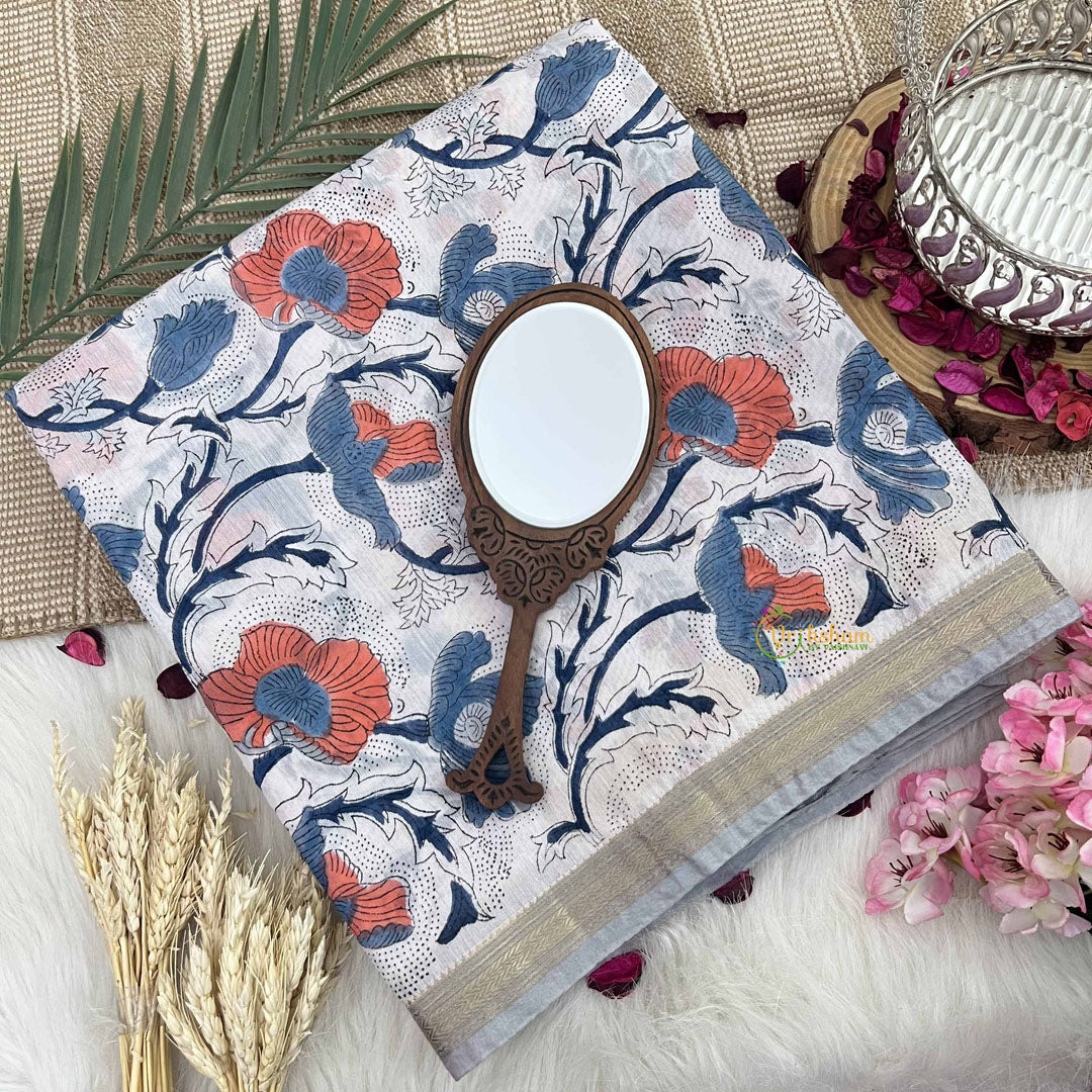Embrace understated sophistication with this White & Pitch Floral Maheshwari silk cotton saree, a luminous creation that celebrates minimalist elegance. Meticulously handwoven from a premium silk-cotton blend, this saree features delicate floral motifs in deep pitch black adorning a pristine white canvas, creating a striking contrast that exudes refined grace. The classic monochromatic palette offers remarkable versatility, complementing various skin tones and styling preferences with effortless poise. The lightweight, breathable fabric provides exceptional comfort while maintaining impeccable drape and structure. Rooted in the distinguished Maheshwari weaving tradition, each saree is a testament to generations of skilled craftsmanship, making it an essential addition to any wardrobe that values authentic artistry and timeless beauty.