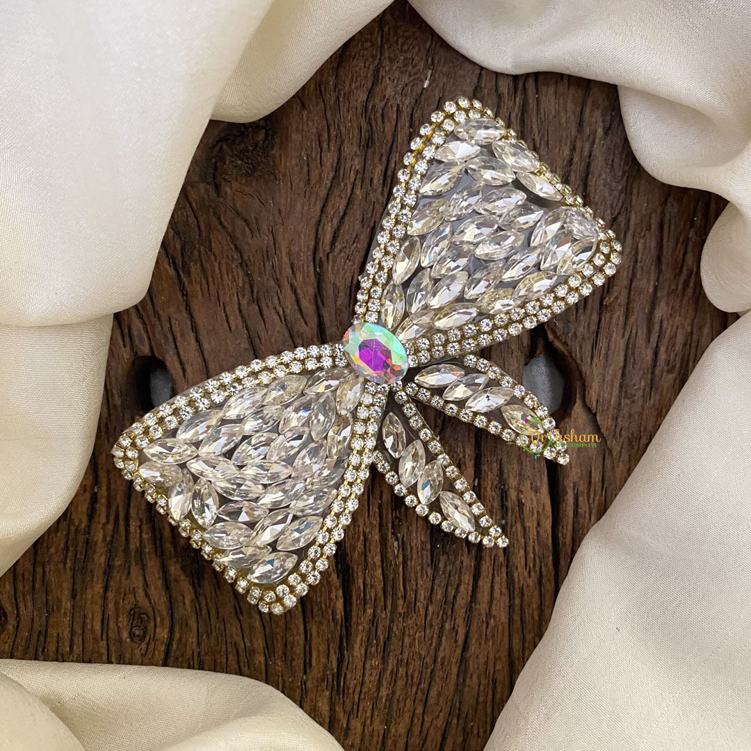 Elevate your hair game with the exquisite Vriksham White Stone Studded Bow Style Hair Pin. Crafted with intricate details and adorned with sparkling white stones, this accessory is a true stunner. Perfect for any occasion, it effortlessly adds a touch of elegance and sophistication to your look.