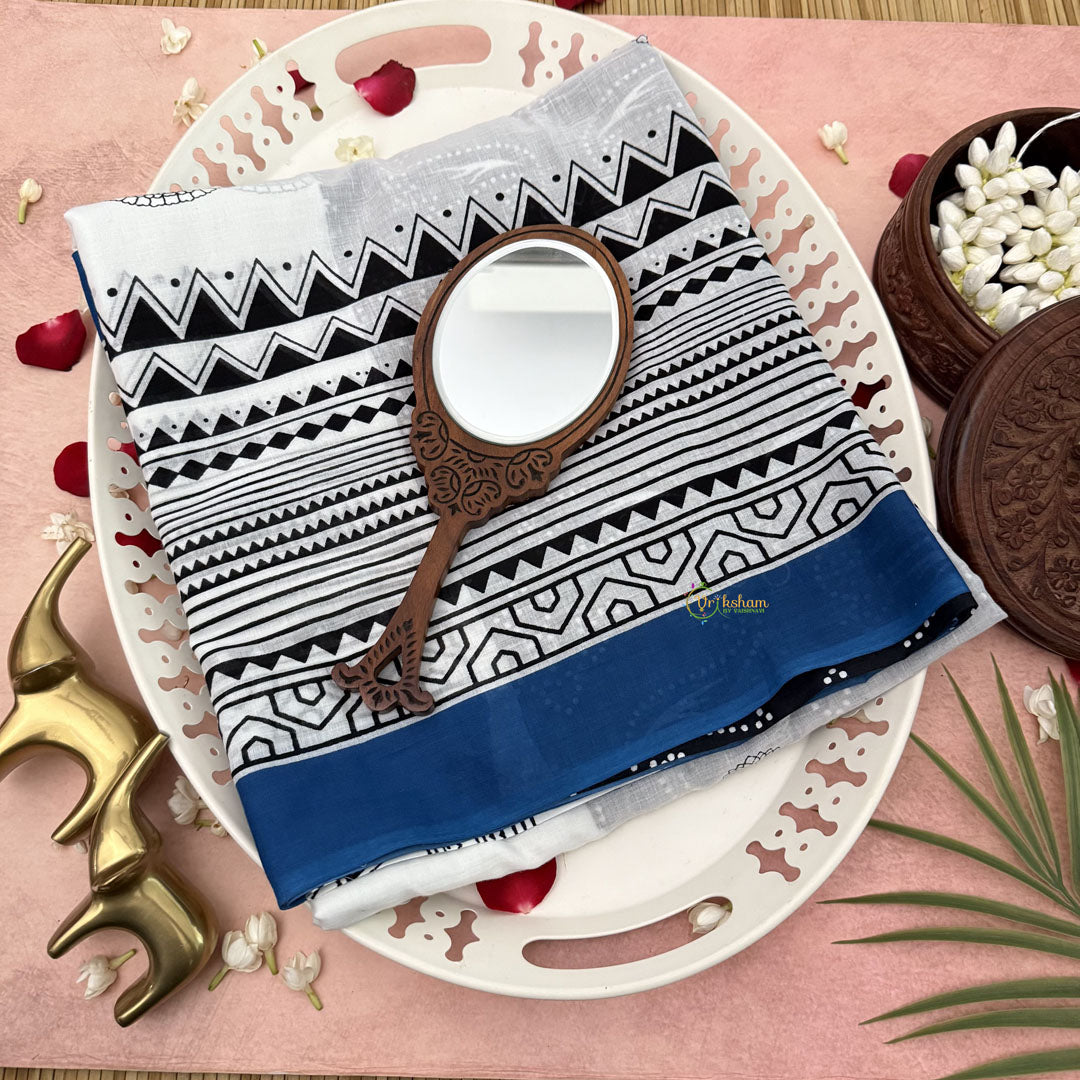 Experience serene elegance with the Vriksham White Cotton Mulmul Saree, adorned with a delicate Buddha face print. Made from lightweight, breathable mulmul cotton, this saree offers exceptional comfort while reflecting a refined, spiritual aesthetic. Its minimalist design and soft texture make it an ideal choice for both everyday wear and special occasions, embodying grace and tranquility in every drape.