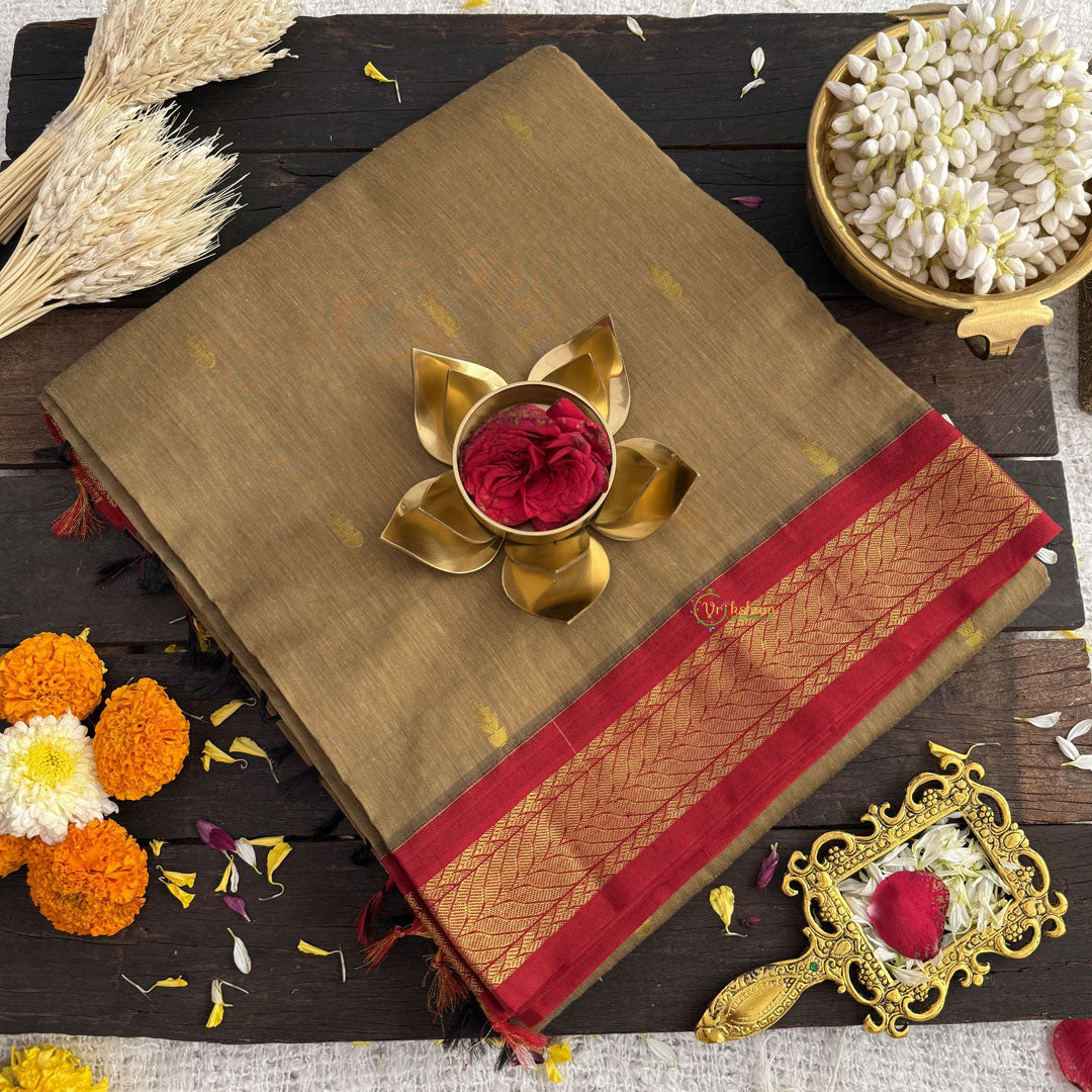 Elevate your traditional wardrobe with the Vriksham Wood With Red Border-Kalyani Cotton Saree. Crafted from premium Kalyani cotton, this saree offers exceptional comfort and breathability. Its elegant wood-inspired pattern paired with a striking red border creates a refined and timeless look, perfect for both festive occasions and formal gatherings. Experience the blend of classic design and superior fabric that enhances your grace effortlessly.