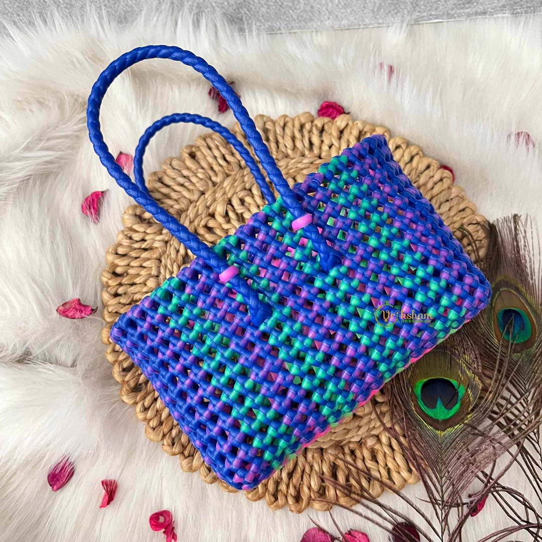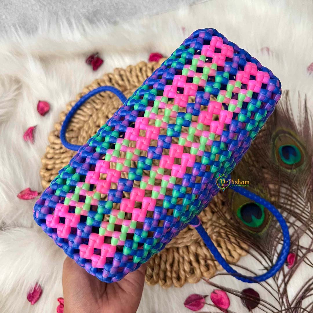 Elevate your everyday aesthetic with this striking woven plastic wire tote, featuring an intricate tri-color checkerboard design in green, blue, and pink. The harmonious blend of jewel tones creates a visually compelling pattern that commands attention while maintaining an air of refined sophistication. Engineered from resilient woven plastic wire, this basket delivers exceptional durability and structural support for all your daily requirements. The generous capacity accommodates everything from groceries to personal items without compromising on style or comfort. Perfect for those who appreciate bold artistic expression paired with functional design, this tote serves as a versatile companion that transitions effortlessly across various occasions and settings.