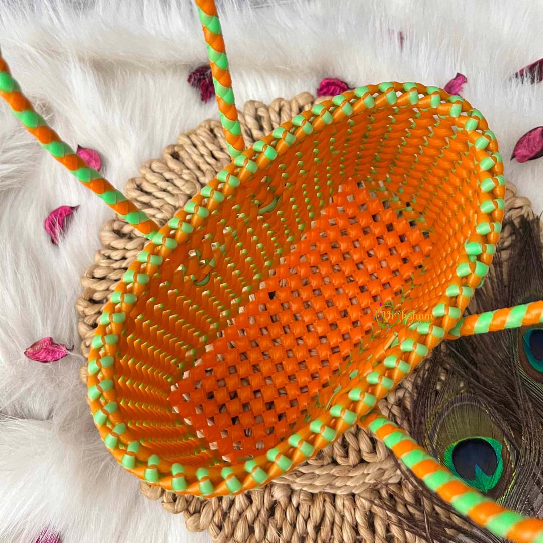 Introduce warmth and natural elegance to your accessory collection with this distinguished woven plastic wire tote, adorned with a captivating green and orange checkerboard pattern. The earthy color combination evokes a sense of refined sophistication while maintaining an approachable, contemporary aesthetic. Constructed from durable woven plastic wire, this basket withstands daily wear while preserving its visual appeal and structural integrity. The spacious design accommodates your essentials with ease, from market finds to travel necessities, all while projecting an air of cultivated taste. An investment piece that transcends seasonal trends, offering timeless versatility for the discerning individual who values quality craftsmanship and distinctive style.