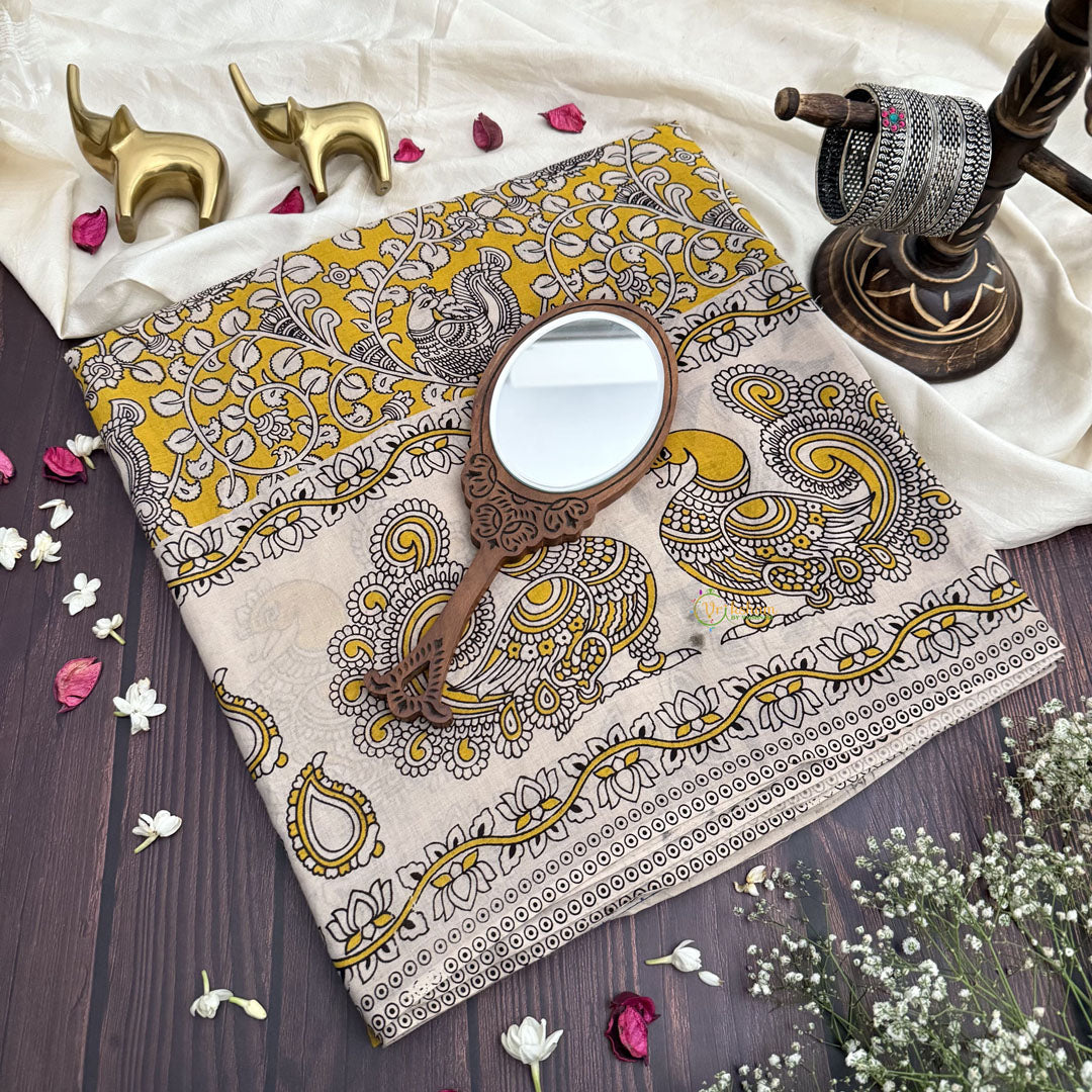 Vriksham Yellow Color Kalamkari Cotton Saree With Gatti Border-VS4547