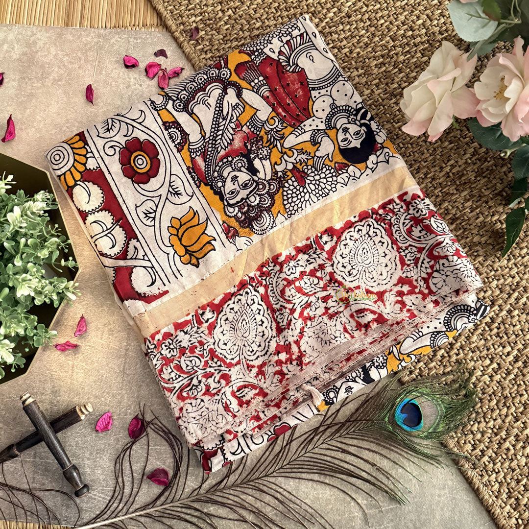 Material: Kalamkari Chennur Silk Saree With Red Border