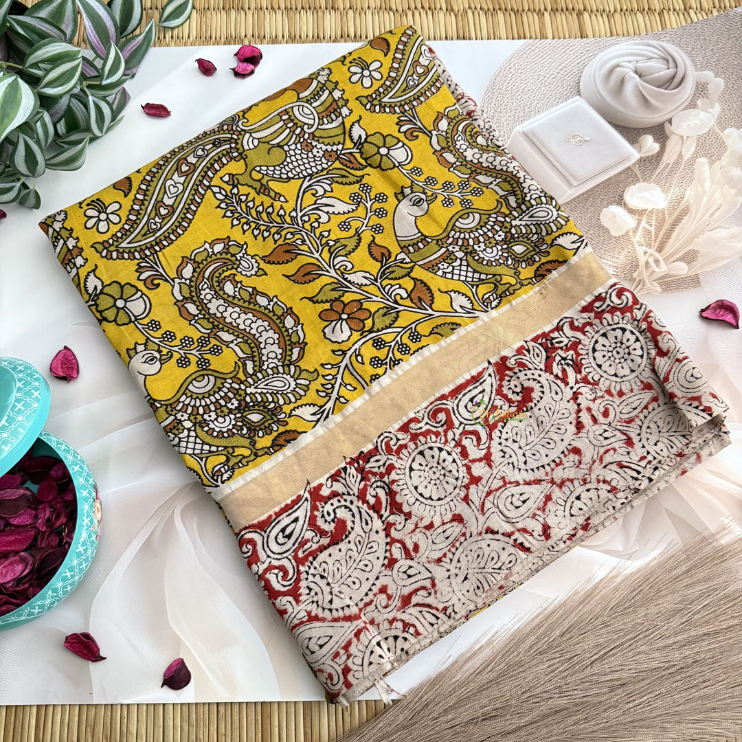 Vriksham Yellow With Red Kalamkari Saree With Gatti Border-VS4686