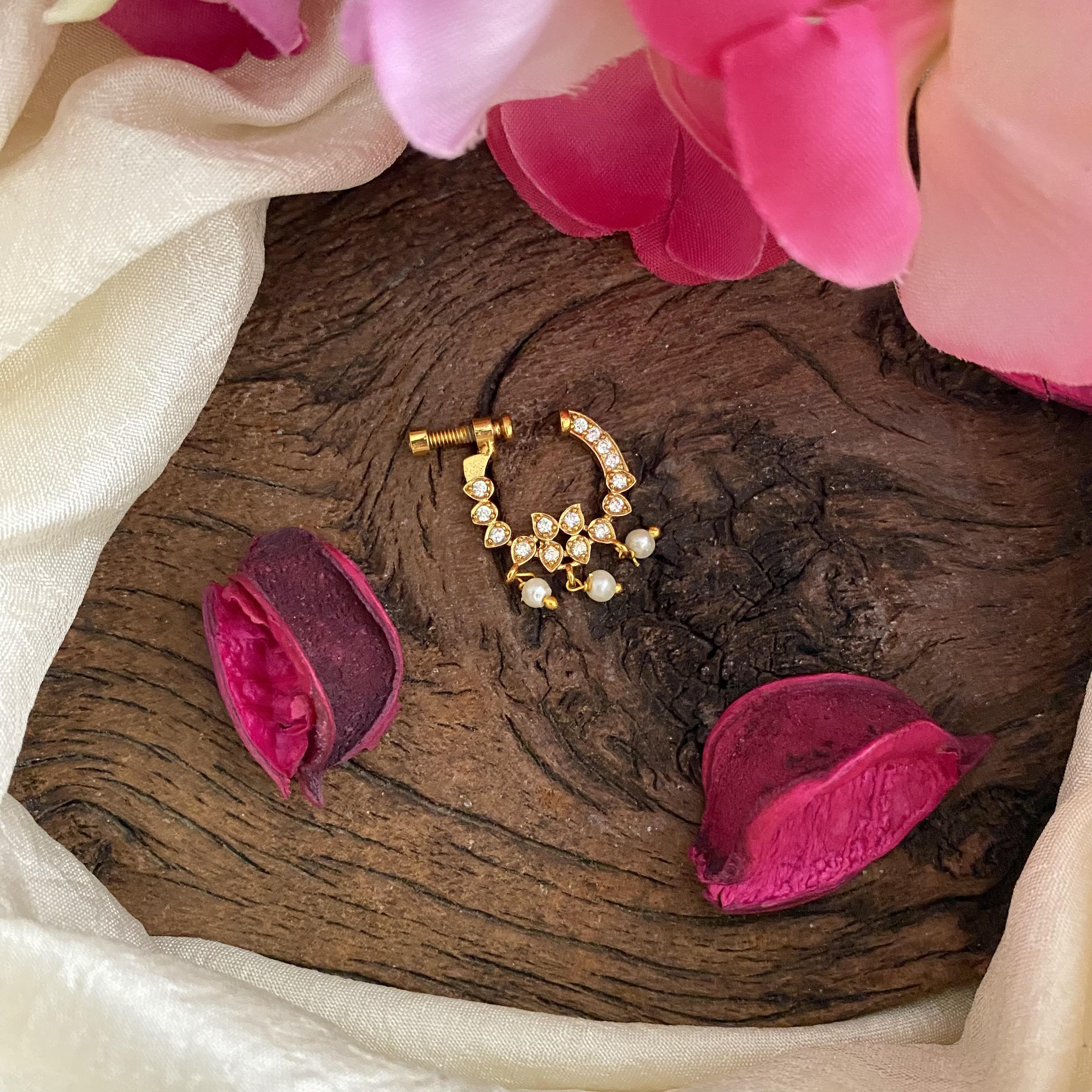 White AD Stone Nath / Nose pin-Pearl-G13797
