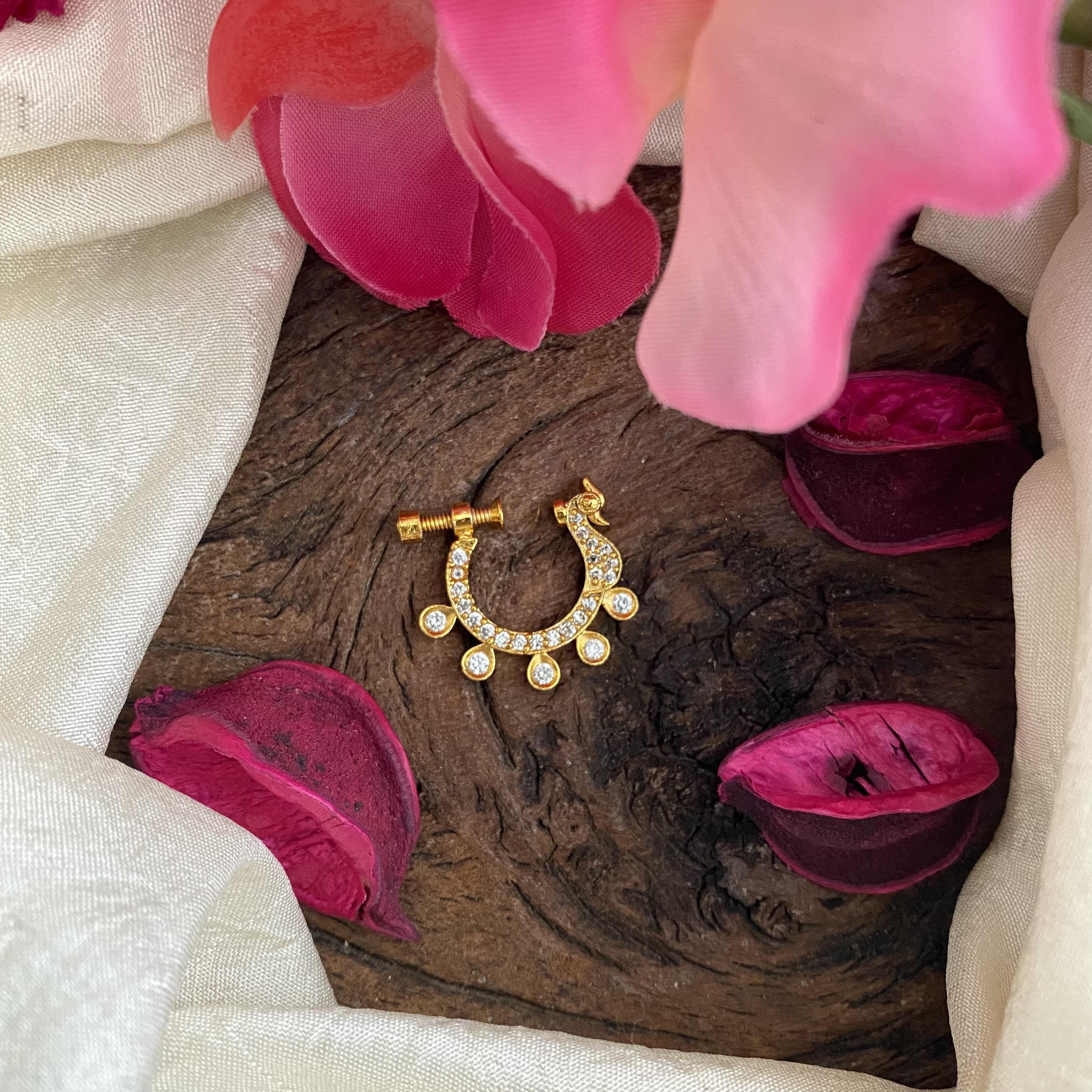 Elevate your style with our exquisite Designer AD Stone Nath / Nose pin. Featuring intricate designs and stunning AD stones in vibrant red, this piece is a must-have for any fashion-forward individual. Perfect for adding a touch of luxury and sophistication to any outfit.