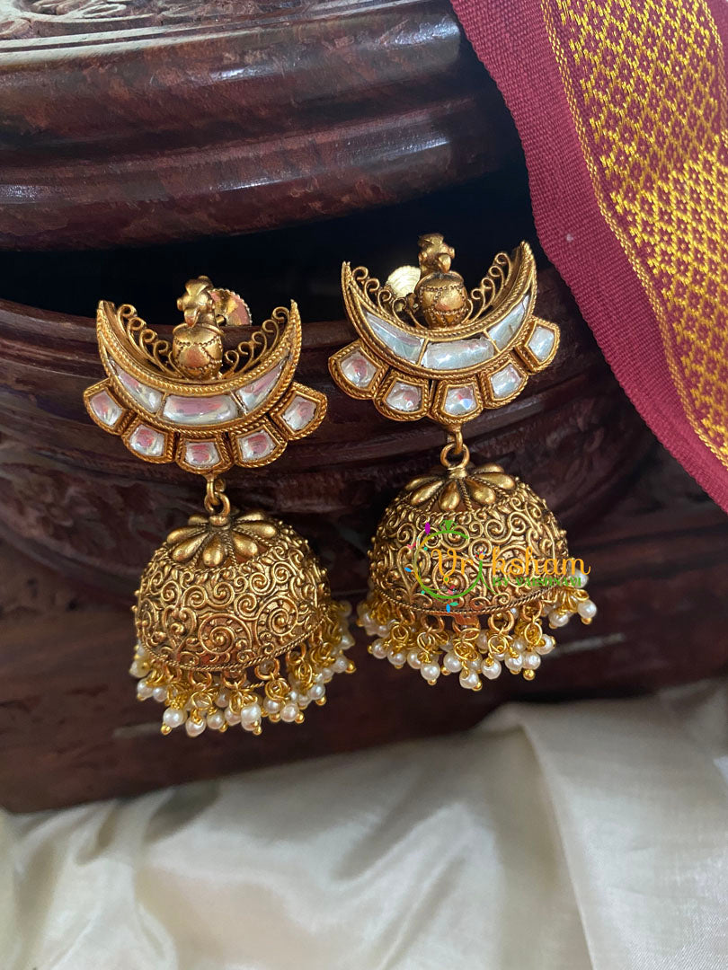 White Chandbali Jhumkas -Premiium matt finish Cluster pearl finish Chandbali Jhumkas.