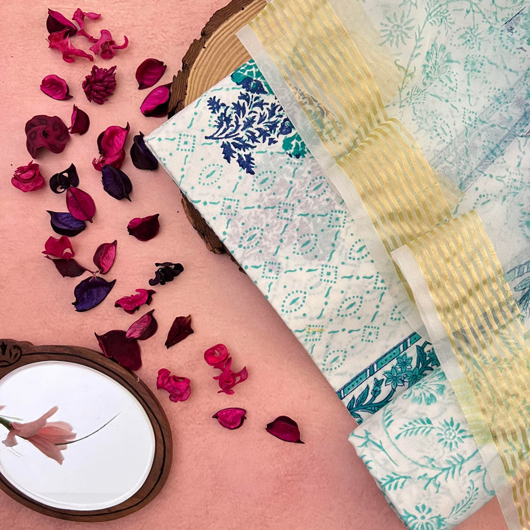 Elevate your style with our White Cotton Suit Material Set! Each piece is bagru printed and comes with a white bottom and organza dupatta. The lightweight cotton ensures comfort while the unique prints make you stand out. Upgrade your wardrobe now and make a statement with our exclusive set!