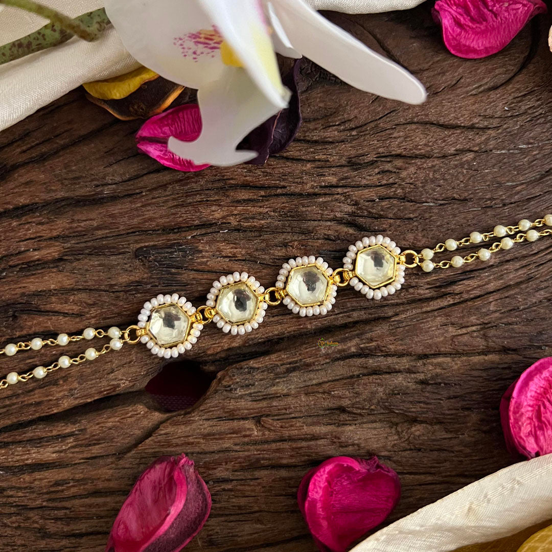 Celebrate the bond of love with our White Kundan Jadau Rakhi-Rakshabandha! Made with exquisite craftsmanship, this hexagon-shaped rakhi features a lustrous pearl for an elegant touch. Show your brother how much he means to you with this perfect symbol of sibling love.