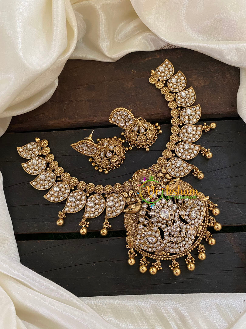 Precious White Kundan Maanga Neckpiece -Pearl finish -White stone- is one of our highest quality royal jewelry ; handmade by artisans; this boasts the design and quality of a real silver .