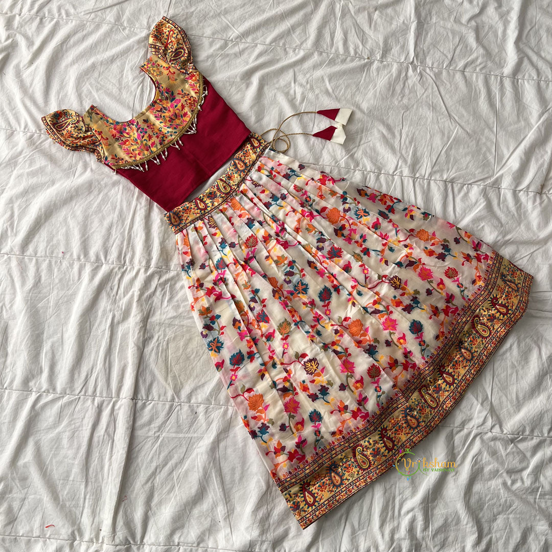 White & Maroon Indian Traditional Girls Lehenga Set-Peacock - Festive wear dress set - consists of top and skirt for girl kids and teens.