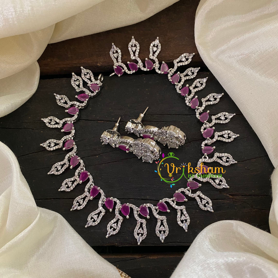 White Tone American Diamond Choker Short Neckpiece-Pink - NO Pendant-AD stone studded jewelry  -set of  choker and earrings Make material: White Tone American Diamond Choker - NO Pendant, is made...