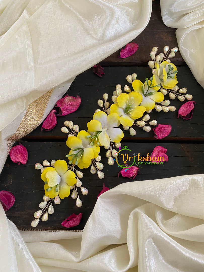 Yellow Bridal Hair Accessory- veni– yellow flowers with white tinge Tie up 'U' shaped veni flower accessory.